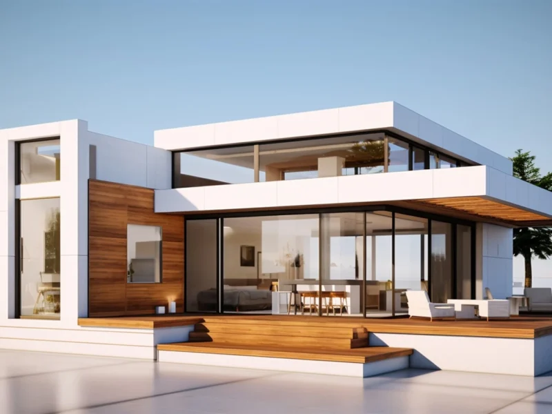 Blacha na rąbek to elegancka i trwała elewacja, odporna na warunki atmosferyczne nawet przez 60 lat. Nadaje budynkowi nowoczesny charakter i świetnie komponuje się z lamelami kompozytowymi, tworząc spójną fasadę – numer 1 dla inwestorów ceniących trwałość i ponadczasowy design.